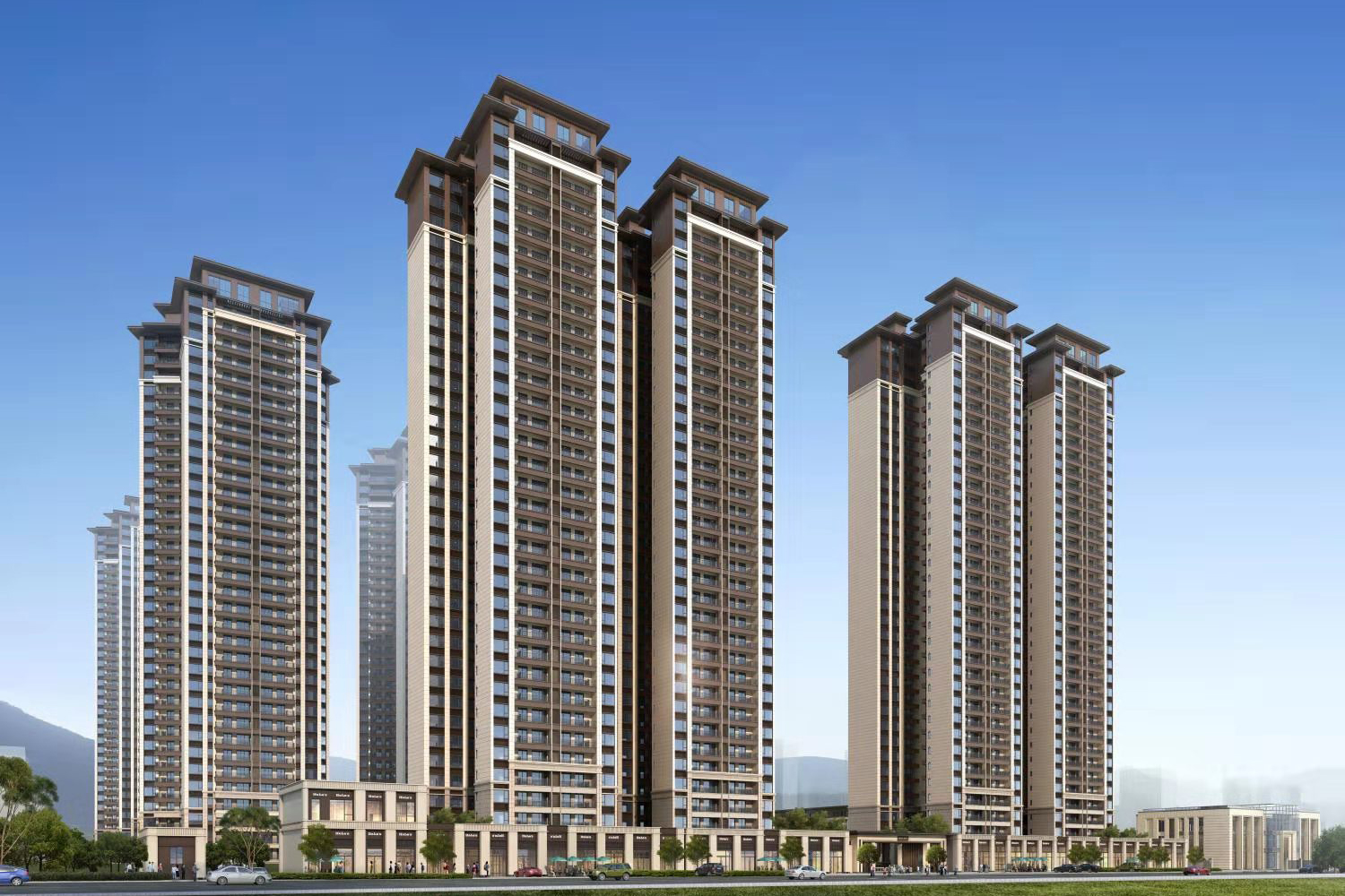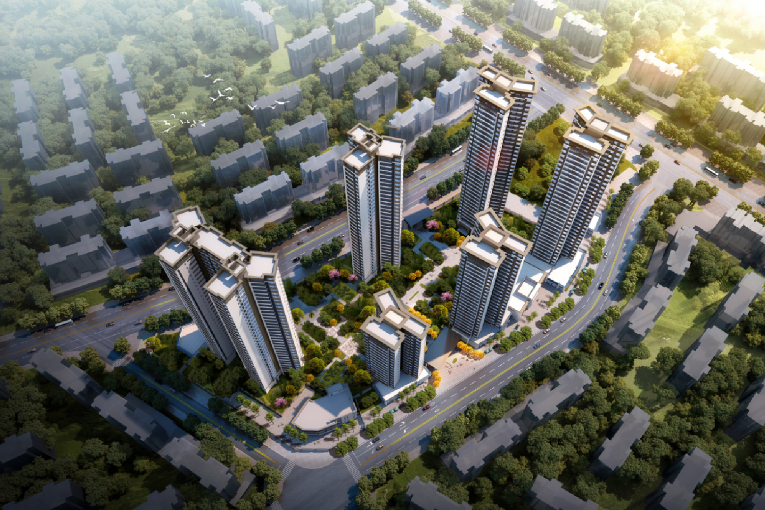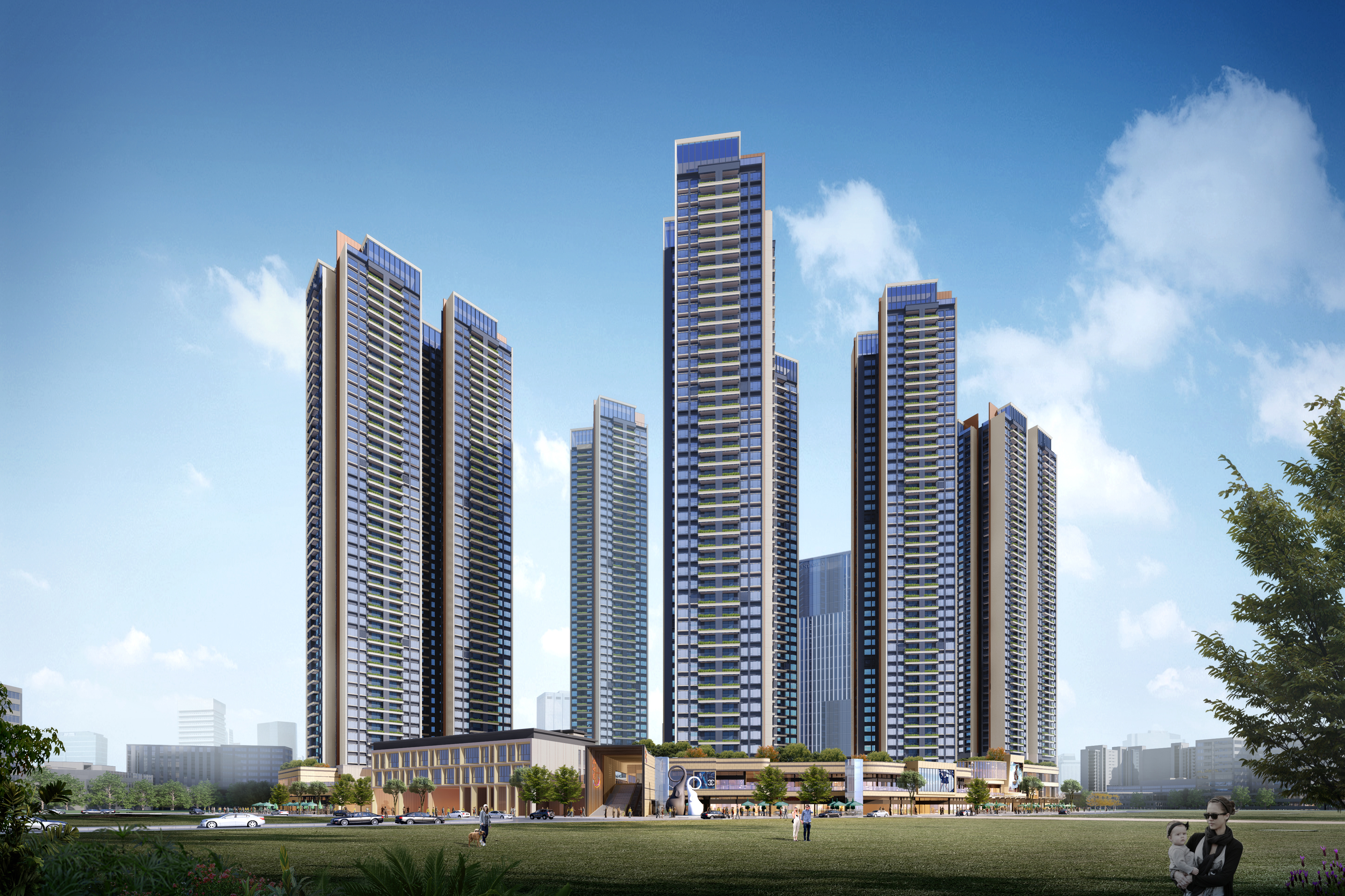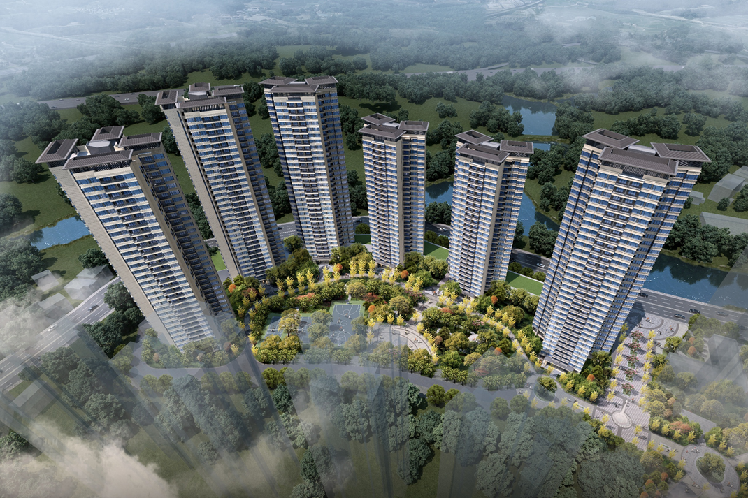 錦熙府項目毗鄰陳沙大道,建筑面積約為131573.52㎡,由1棟(32F)、2棟(17F)、3棟(17F)、4棟(32F)組成。