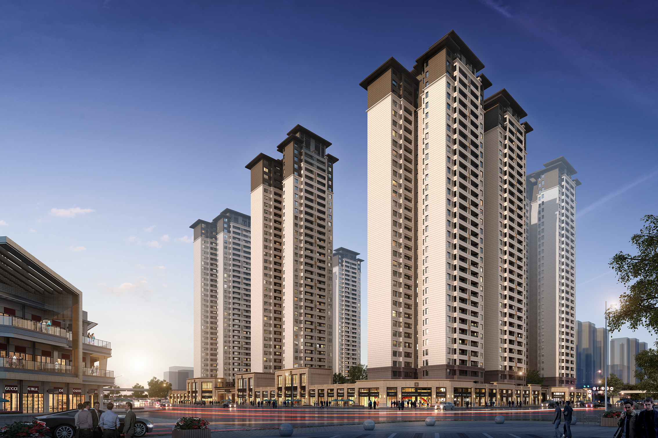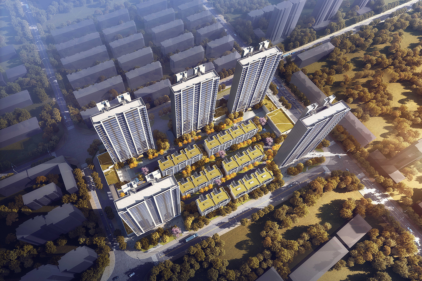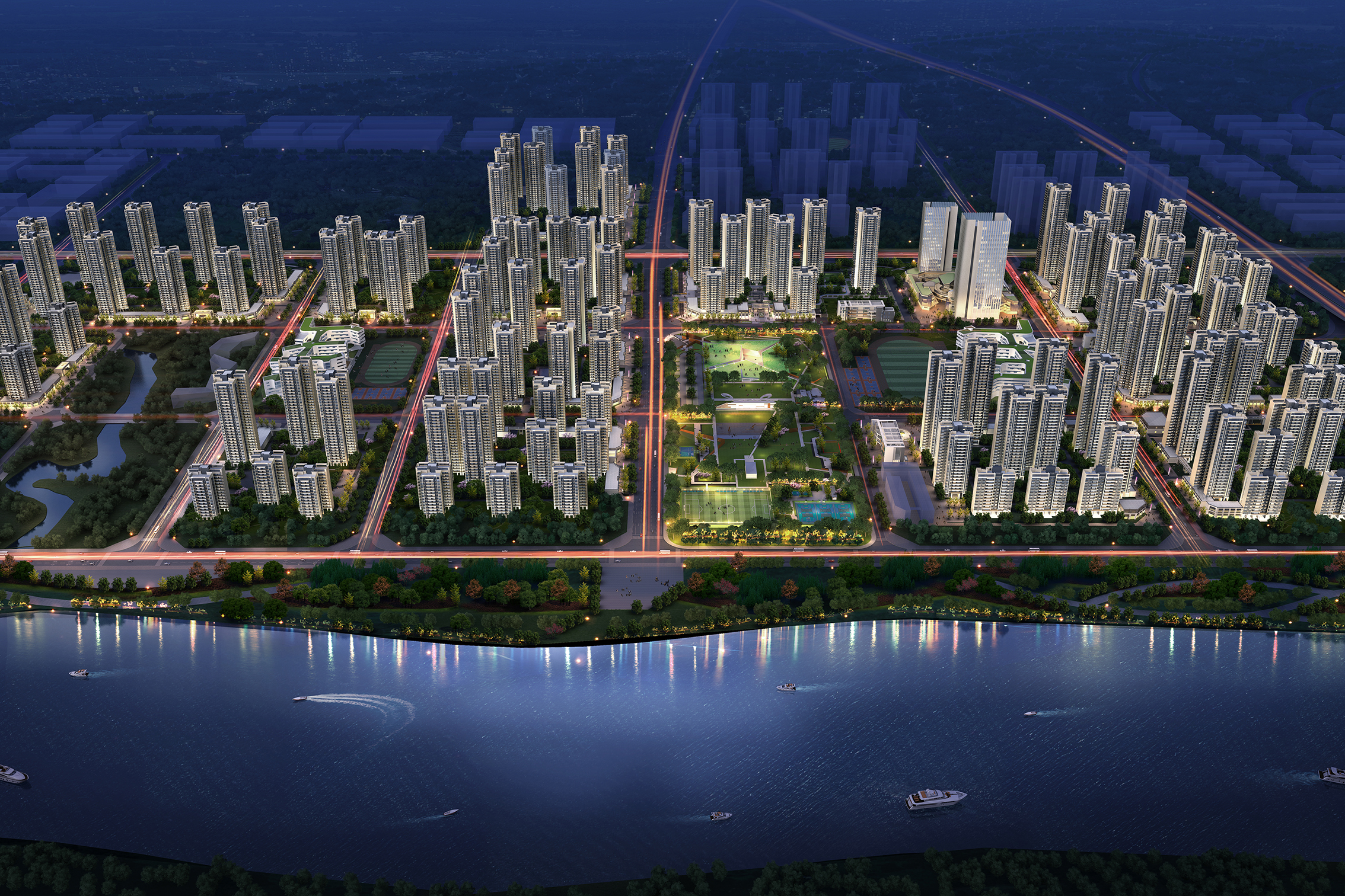 錦熙府項目毗鄰陳沙大道,建筑面積約為131573.52㎡,由1棟(32F)、2棟(17F)、3棟(17F)、4棟(32F)組成。