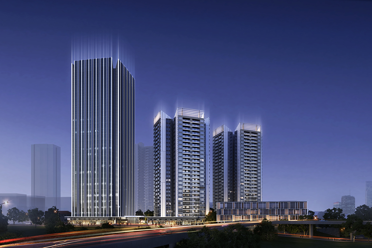 匯德里項目位于佛山市順德區(qū)北滘鎮(zhèn)美的大道以北、益豐路以西地塊,總建筑面積204085.12㎡,由五棟150m以內(nèi)的超高層住宅塔樓組成,其中1座、2座、3座帶兩層商業(yè)裙房;10座為單層三合一環(huán)衛(wèi)設施,11座為兩層社區(qū)用房,兩層地下室。地塊周邊交通便利,東南側以及東南方向均有在建地鐵。地塊周邊配套完善,南側為順德未來城,東側為規(guī)劃待建學校用地及醫(yī)院,北側為待建居住用地,西側為已建成居住小區(qū),東南角為已建電站。
